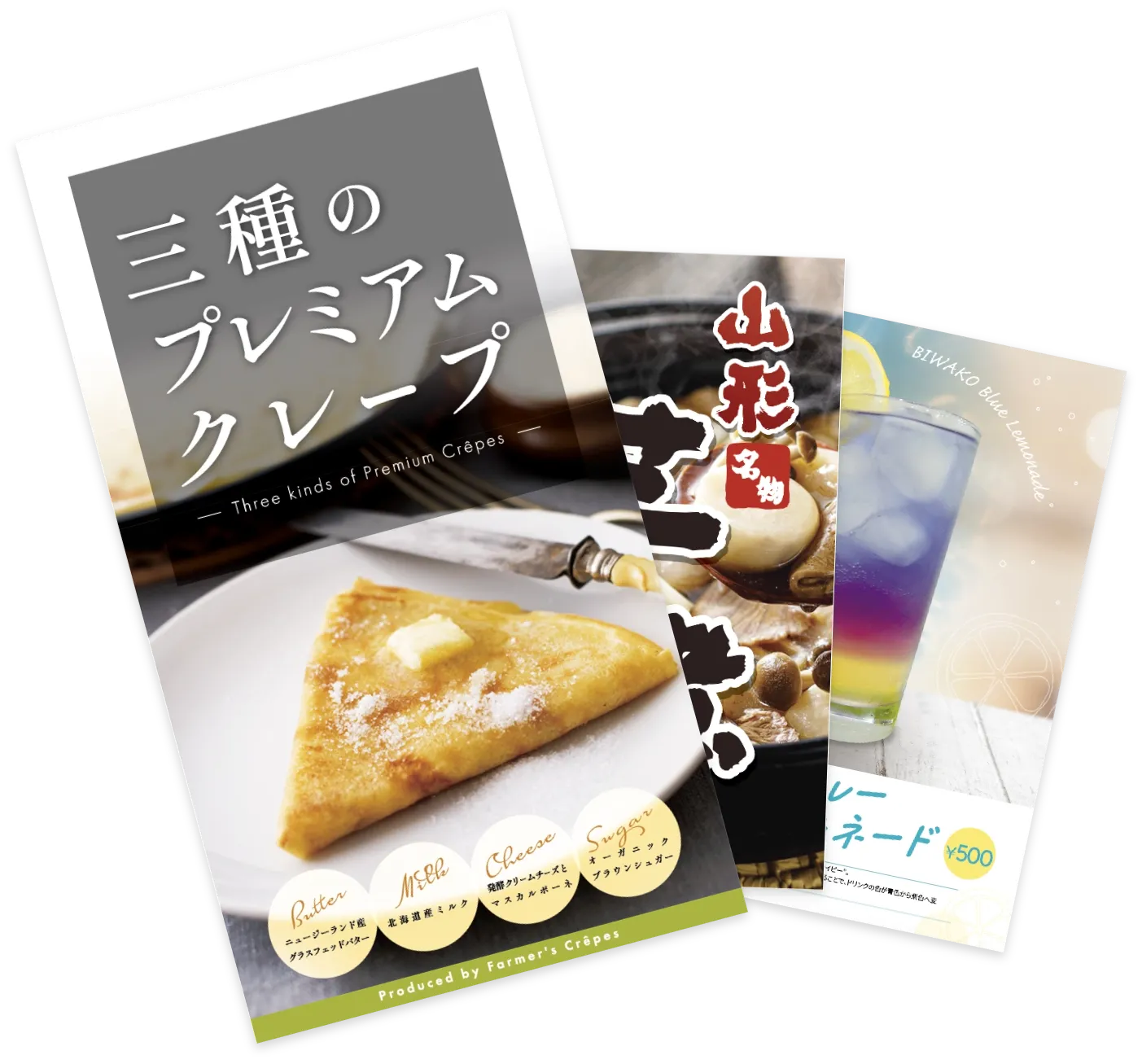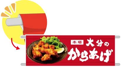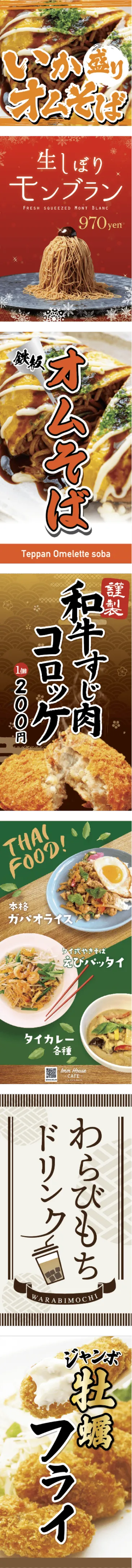 とおる人の目線をグッと引きつける、訴求力のある幕が特徴です。「おいしそう」「食べてみたい」をより引き出す幕のデザイン。