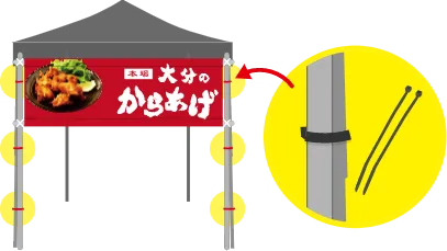 縦と横のポールが交差する位置を結束バンドなどで固定します。