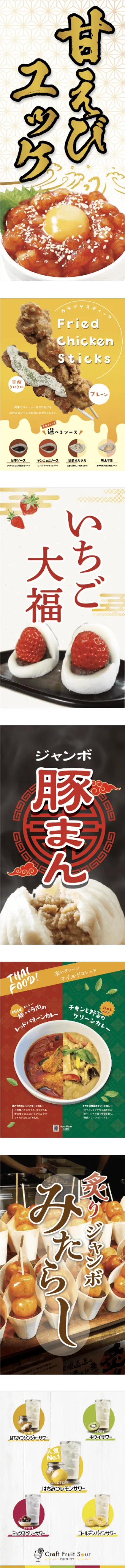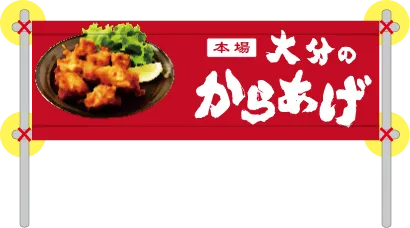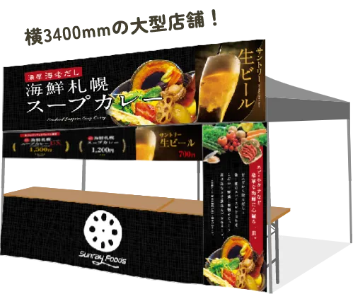 とおる人の目線をグッと引きつける、訴求力のある幕が特徴です。「おいしそう」「食べてみたい」をより引き出す幕のデザイン。