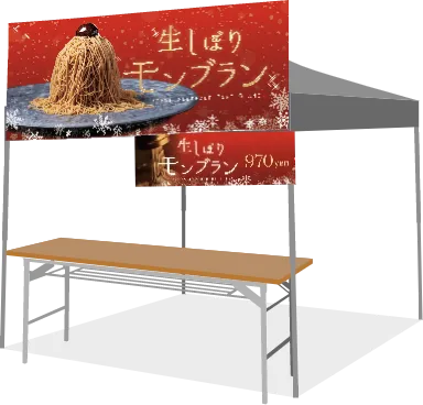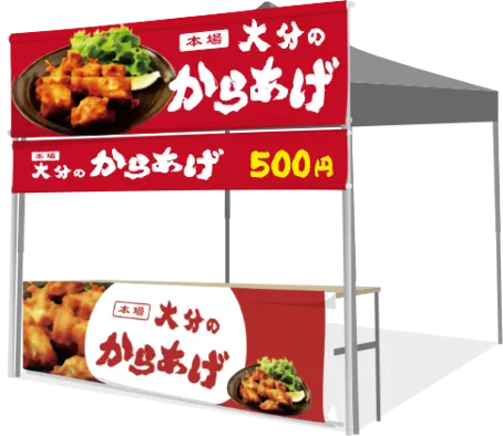 幕プロの「幕」は単なる飾りではなく、集客ツールとして人の目線を引きつけます。キッチンカー、テントでの出店に効果絶大でリピート率は90%!!売りたい商品名と、写真で簡単にオリジナルの幕を作成します。お急ぎなら短納期での納品も受付ます。